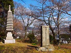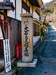 大石神社から程なくのところに、大石良雄が隠れ住んだと言われる邸宅址があります。現在はこのように高台で見晴らしが良いところですが、当時は木々が鬱そうと繁っていて裏は山で絶好の隠れ場所であったそうです。討ち入り後に邸宅、田畑等一切を岩屋寺に寄進しました。