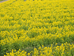 ♪菜の花畠に入り日薄れ・・・・♪♪ 畑を吹き抜ける風は、まだまだ肌寒さを感じさせますが、菜の花の黄色はすごく暖かさを感じさせます。辺り一面に菜の花の香りが漂っていました。(動 画 小川のせせらぎと鐘の音に雰囲気があります)