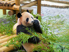 「アドベンチャーワールド」その3。メイン動物のジャイアント・パンダです。常に人でごった返していて立ち止まって写真など撮れないのですが、行ったときは人は数名いただけでゆっくりと見ることができました。静止画、動画も撮ることができました。(動 画)