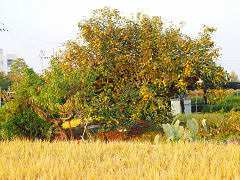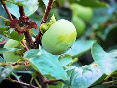 近くの田圃は、稲穂が風に揺れています。キュウイや柿も実を付けていました。この富有柿もう少し経てば赤く色づく頃になるのでしょう。