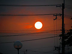早朝カメラを持って散歩に出かけました。太陽が昇ってくるところをパチリ、花たちも太陽に挨拶していました。