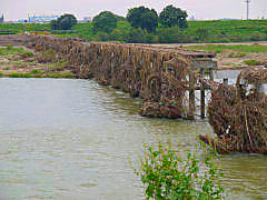 台風12号は雨台風でしたが近畿各地で大きな被害がでました。城陽市は被害が出たとは聞き及んではいませんが、流れ橋がまたまた流れてこのような状態になっています。来年の春以降でないと復旧しないでしょうが、今の時勢ではそれも無理かも?