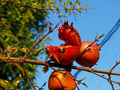 実りの秋がやって来ました。スズナリの柿、ザクロは熟し過ぎて割れていました。この辺では珍しい温州ミカンも色づき始めていました。