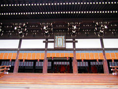 11月6日まで京都御所は一般公開しています。入るときはカバンを開けて中を見せなければなりません。写真は左から「紫宸殿」と紫宸殿の両側に植えられている「左近の桜」、「右近の橘」です。