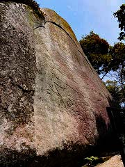 弥勒大磨崖仏から少し行ったところに、「虚空蔵磨崖仏」が大きな岩に描かれていました。弘仁年間(810~824)弘法大師が、一夜で彫刻したといわれていますが、中国山西省に同じような磨崖仏があるので奈良時代の渡来人の作だと考えられています。