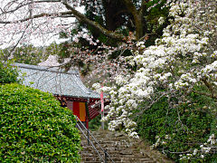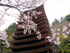 奈良県桜井市多武峰(とうのみね)にあります「談山神社(たんざん)」です。秋の紅葉も見事なところですが、春も少ないですが桜を見ることができます。