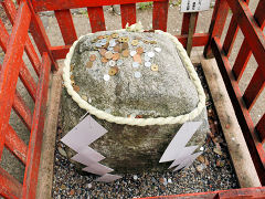 十三重塔の遠望と、この石は、「むすびの岩座(いわくら)」と呼ばれて、古来から縁結びの神の宿る岩として信仰されてきたそうで、なでてから祈念するとよいそうです。
