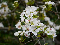 拝観料100円を払って仏隆寺に入ると紅白の花が迎えてくれました(動 画)。なかなかきれいなものです。このアップの花は、山梨で樹齢約450年で長十郎梨の原木だそうです。