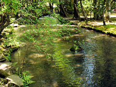 木立の中に紫式部が詠んだ「ほととぎす 声まつほどは 片岡の もりのしづくに 立ちやぬれまし」という歌碑がありました。紫式部は上賀茂神社にある片岡社に参って残したものだそうです。神社にはこのような御手洗川が流れていて、そのせせらぎを聞きながら本を読んでいる人がいました。
