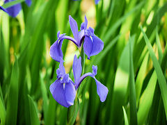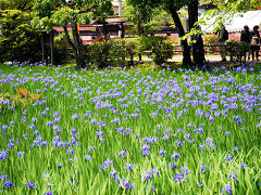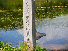 大田神社を過ぎるとほどなく「深泥池」に着きます。深泥池は、水生植物群落として天然記念物に指定され、周囲約1540m池の中央に浮島があります。この池に流入する川はなくて、雨水だけでこの池は保たれています。白色の杜若が咲いていました。