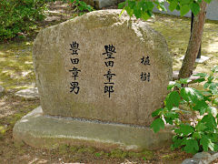 妙満寺その3。フト見上げると比叡山の雄大な姿を見ることができます。フト足元を見るとどこかで見たことがある名前がありました。トヨタ自動車の・・・・ へェ~植樹してるんだぁ~~ この大きなものは、仏舎利大塔で昭和48年に建立されました。全国の檀家の納骨堂で、今のトヨタの基礎を作った豊田佐吉翁など豊田家のもここに納骨されているそうです。