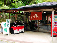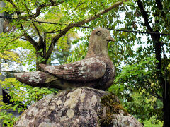 妙満寺の帰りに三宅八幡神社へ行きました。この神社は子供の神さまとして信仰を集めています。神社は狛犬が迎えてくれるのが普通ですが、ここはこのように鳩が迎えてくれます。神社の前にはこのような茶店があり、鳩餅が有名です。鳩の形になった生八ツ橋と思っていただければ間違いありません。