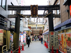 誠心院の近くに「錦天満宮」があります。ご存じ菅原道真を祀った学問の神様です。今は受験シーズンですから参拝者も多いことでしょう。ここで有名なのが鳥居です。鳥居の先はビルの壁にピッタリと引っ付いています。それどころか先はビルの壁を突き破って中にあるのです。昭和10年頃にこの鳥居は出来たのですが、その当時も先は民家の屋根と重なっていたそうです。ビルが建てられたとき、移築したり先を削ることなくそのまま取り込んでしまう発想は、神社仏閣と共存共栄している京都の人の心意気が解ろうというものですね。