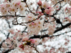 淀川河川公園「背割堤」その2。名前は知りませんが、一本だけこのように花が大きくて白色をした桜がありました。そして枝垂れ桜も一本ありました。それ以外はすべてソメイヨシノです。