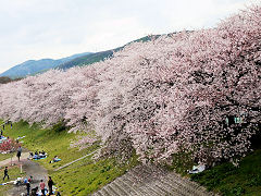 八幡市の淀川河川公園「背割堤」の桜並木は、この周辺では最も見ごたえのある桜の名所ではないでしょうか。川の流れと桜など絵になる風景が展開しています。広い河川敷があると御多分に漏れず、ここでも、焼き肉をやっている人が多くその匂いが一面に漂っていました。せっかくの満開の桜を愛でる人には興醒めの光景です。