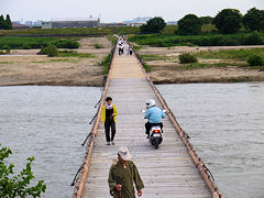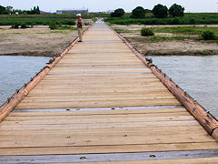 修復工事をしていた「流れ橋」が、昨日開通したので早速行ってみました。半分は新しい板を使用されているので、防腐剤の匂いが新しさを感じさせます。