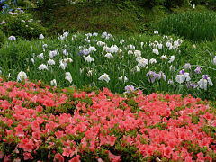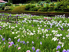 柳生花菖蒲園その7。「つくばいと木賊」、「サツキとハナショウブ」、「ハナショウブの変わり種」です。