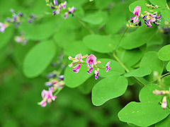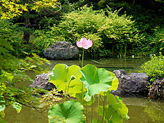 城南宮・庭園の続きですが、やたらと背の高い蓮が一輪花を咲かせていました。萩も花を付けていました。この猛暑の中でも季節は進んでいるようです。