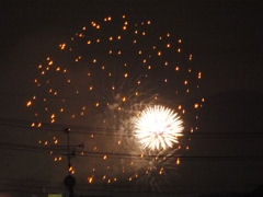 一昨日、宇治川花火大会がありました。午後から台風の影響か集中的に強い雨が降りましたが、19時頃には何とか開催できるような天候になりました。わが家の2階から400mmの望遠レンズで撮しました。