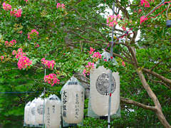 東本願寺の大谷祖廟にお墓参りに行ってきました。8時30分頃に行ったのですが今にも雨が降り出しそうな天気でしたが、蒸し暑く汗だくでお参りしてきました。万灯会が行われていて、夜にはこの提灯に灯が入りお墓なので、きれいというか何というか・・・・ 百日紅もお参りの老若男女を迎えてくれます。