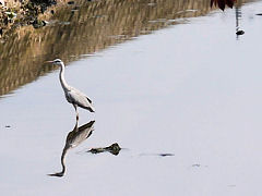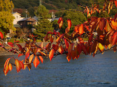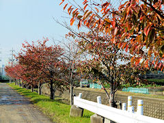近くの嫁付川のソメイヨシノは、このように紅葉しています。川も少しずつきれいになってきたのか、このように水鳥も飛来していました。