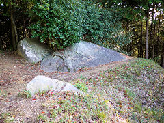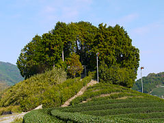 正法寺の近くに小高い丘があり周りは茶畑になっていますが、その中に茶畑には不相応な石畳の立派な道が作られています。石畳を辿っていくと宮内庁の案内板がありました。ここは、聖武天皇の皇子である安積親王のお墓でした。このようなところにも小さなプレハブの建物があり机とパイプ椅子がありました。宮内庁の職員が来るときがあるのでしょうか。