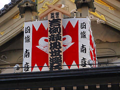 京の師走の風物詩といえば、南座の「顔見世興行」もその一つです。11月30日~12月26日まで行われていますが、5500円~27000円と料金も高額です。出演者の名前が書かれた「まねき」を撮してみました。「勘亭流」の文字で見事に書かれています。
