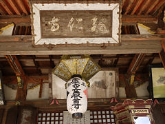奈良市虚空蔵町にある高野山真言宗「弘仁寺」です。1200年前平安時代初期の創建だそうです。左は本堂に掲げられている算額です。大和の数学者石田算楽軒の門弟によって安政5年(1858年)に奉納されたものです。問題は、植物の種が詰まった立方体の1辺の長さを求めよというもので、解答は、6兆7662億2540万1695間5尺で、メートルでは130億kmだそうで現在の数学で解いても正解だそうです。