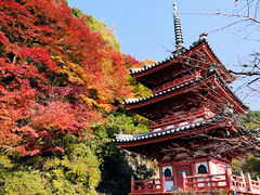 三室戸寺その2です。本堂の隣に三重塔がありますが、この辺りが最も写真になる綺麗なところではないでしょうか。京都紅葉の名所紹介の写真集に出てくるところです。