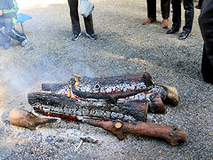 城陽市寺田水度坂にある「水度神社(みとじんじゃ)」に行ってきました。市内では一番大きな神社(だろうと思います。)ですので、参拝者も多くこのようにズラリと50m程並んでいました。片隅に焚き火がありましたが、昔はよく焚き火をしたものですね。そこに芋を入れて焼き芋を食べてものです。今は焚き火をする場所がありません。