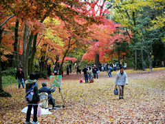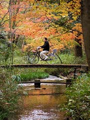 下鴨神社その2。紅葉を楽しみ方も人それぞれで、私のように写真を撮る人、このようにキャンバスに筆を走らせている人それぞれが糺の森の風景に溶け込んでいます。小川にかかる橋を自転車で渡る人も絵になりますね。