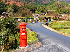 京都府南丹市美山町に「かやぶきの里」があります。この集落には50戸の民家がありますが、そのうちの38戸が茅葺きの建物で、江戸時代の中期から末期に建てられたもだそうです。郵便ポストも筒形のポストで、今では見ることがない懐かしいものです。