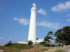出雲日御碕灯台です。明治36年4月1日に初点灯されました。光度=48万カンデラ、光達距離=21海里、高さ=海面上から63mだそうです。有料ですが、灯台に登ることができます。