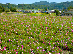木津川市加茂町にある「恭仁宮跡(くにきゅうせき)(山城国分寺跡)」には、このようなコスモスが秋風に揺れていました。先日の台風18号で揺れすぎたのか、みんな疲れて横になっていました。