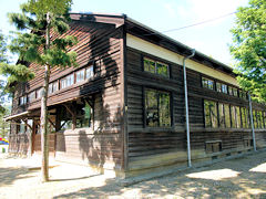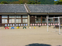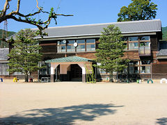 「恭仁宮」があったところに木津川市立「恭仁(くに)小学校」がありました。校舎の写真を見て気付かれたことありませんか??? そうです!!この小学校は、全校舎木造建築なのです。木造校舎がある学校はあるでしょうが、全部が木造である学校は珍しいのではないでしょうか。講堂・体育館もこのような木造建築です。維持管理が大変でしょうが、いつまでも木造校舎であり続けてコンクリートに立て替えることがないように願いたいものです。母校である京都市立北白川小学校も、当時は木造校舎が残っていました。階段を歩くときギシギシという音は今でも耳に残っています。