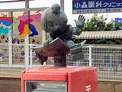 鳥取県境港市に、「水木しげるロード」があります。ゲゲゲの鬼太郎の作者水木しげるの誕生の地に水木しげる記念館があり、JR境港駅から記念館までの1000mが水木しげるロードと呼ばれています。駅前には、このようなモニュメントが出迎えてくれます。警察の交番所も、郵便ポストもゲゲゲの鬼太郎です。