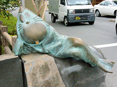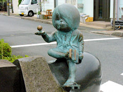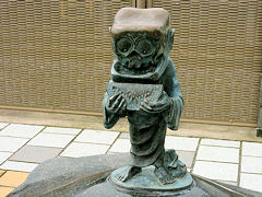 水木しげるロードの両側の歩道には、このようなモニュメントが点々と設置されています。この辺一帯の商店街は鬼太郎一色になっていました。そんなゲゲゲの鬼太郎ですが、この漫画は読んだというか、見たということが全くありませんので、ユーモラスな妖怪という設定なのだろうということしかわかりません。