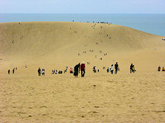 鳥取砂丘です。久し振りに2度目の砂丘です。多くの人が海の見える向こう側の砂丘まで歩いていました。その途中にこのように草が生えているところがあります。以前に来たときよりその範囲が広がっているようです。世界では砂漠化が進んでいるとの報道がありますが、ここは緑地化が進んでいるようです。皮肉なものですね。砂丘を守るためにこの草や苔等を除去しないのでしょうか。除去しない理由があるのでしょうか。