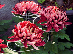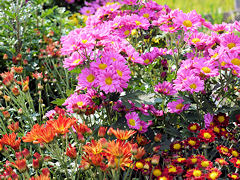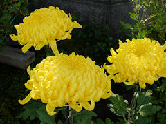 道端の菊を撮りつつ歩いていくと、菊を栽培しておられるお宅がありました。玄関先から生け垣から菊が所狭しと並べてありました。菊は土作りからと言われていて、よい培養土を作らないと、このような花を咲かせることは出来ないそうです。