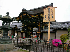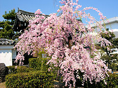 京都市上京区寺之内にある日蓮宗「妙顕寺(みょうけんじ)」です。元亨元年(1321年)に京都における日蓮宗最初の道場として創建されました。1788年の天明の大火で焼失しましたが、天保5年(1834年)に再建され今日に至っています。ここも枝垂れ桜が見事でした。ソメイヨシノは、落花盛んで風が吹く度に花びらが舞っていました。