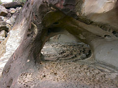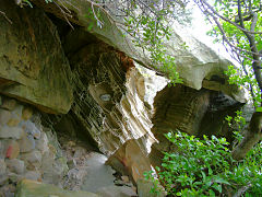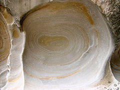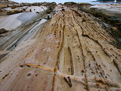 見残し海岸のその2。年間足摺岬を訪れる観光客は約80万人だそうですが、「見残し海岸」を見る観光客はその1/5に満たないそうです。近くの足摺岬の知名度は高い(喜ばしくない事でも有名? 4/29をご覧ください)のですが、竜串・見残しの名は地元の人たちが考えているほどには知られていないようです。荒々しい足摺岬が男性的ですが、竜串・見残し海岸の柔らかい砂岩で出来た眺めは女性的な印象を受けます。