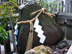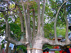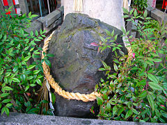 京都市左京区東山三条のバス停前に「満足稲荷神社」があります。豊臣秀吉が、出兵に際し稲荷に戦勝を祈願、連戦連勝したので秀吉はおおいに満足したのでこの名があります。伏見桃山城にありましたが、元禄6年(1693年)に徳川綱吉が現在地に移しました。写真は、左からクロガネモチで樹齢は400年一本の幹から8本に枝分かれした特徴のある木でご神木となっています。この石は、「岩神さん」と云いこの石をさすって、頭をなでると頭が良くなり、悪いところをさすると治ると云われています。早速、頭をなでて実行したところ、良くなったと思いますよ。こんなところに「岩神さん」という石があるということを知ったのですから・・・・ みなさんもいかがですか!!