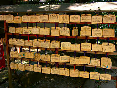 白峯神宮(2009. 5. 1を参照)には、「蹴鞠の碑」があります。この神宮が建っている地は、蹴鞠と和歌の宗家であった飛鳥井家の邸宅があったところなのです。同家の守護神の「精大明神」の社殿があり、球技の神様なのです。だから、野球、サッカー、バスケットボール、バレーボールなど球技をしている者から必勝祈願の絵馬が、このように沢山奉納されています。京都サンガFCも監督以下全選手がお参りして、J1とJ2を行ったり来たりしているエレベータ球団を脱却して常にJ1の上位にいる京都サンガになってもらいたいものです。