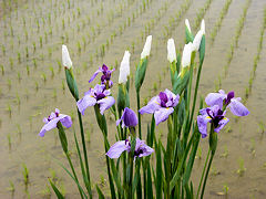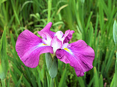 昨日、花菖蒲祭があったので行ってみました。神社仏閣の花菖蒲は今が見頃でしょうが、ここは生産農家の花菖蒲なので半月から1ヶ月は遅いのではないかと思いつつ来たのですが、予想通りで99.9%は花が終わったどころか枯れてしまっていました。写真は残り0.1%の花菖蒲です。主催の城陽市観光協会の皆さん!!旗を立ていろいろ準備されたのでしょうが、肝心の花が枯れ果てている時期に祭とはどうなのでしょうか。農産物の即売会が主だったのですか。