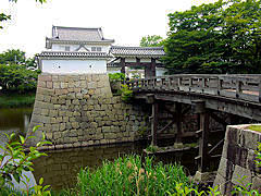 滋賀県甲賀市にある「水口城跡」です。寛永11年(1634年)三代将軍徳川家光上洛の時、将軍宿館として築かれました。作事奉行は、小堀遠州だそうで庭園だけでなく城も造るのですね。2年間に延べ10万人の大工が動員されて作られましたが、将軍の使用は上洛帰途の一晩だけだったそうです。一晩泊まるだけで、これだけのものを造るとは、もの凄い権力と財力があったのですね。その後、天和2年(1682年)水口藩の成立とともにその管理下に置かれ、明治維新後廃城となりました。