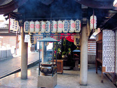 『こいさんが、わてをはじめて法善寺へつれて来てくれまったのは『藤よ志』に奉公に上がった晩やった。はよう立派な板場はんになりいや云うて、長いこと水掛不動さんにお願いしてくれはりましたなあ。あの晩から、わては、わては、こいさんが好きになりました。』 このような法善寺横丁の中に浄土宗の法善寺があります。本尊は阿弥陀如来ですが、水掛不動(西向不動尊)が特に有名です。水を掛けてお詣りするのでこのように全身苔むしています。