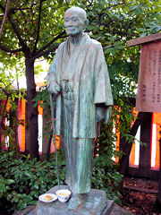 京都市左京区の東大路通りと丸太町通りが交差点に熊野神社があります。この神社の歴史は古く弘仁2年(811年)に創建されたが応仁の乱で焼失、寛文6年(1666年)再建されたが規模は縮小され、大正元年の市電開通により敷地が削減され現在の大きさになっています。この周辺は聖護院の森と言われる森が広がっていたそうです。聖護院と言えば京銘菓の「八ツ橋」ですが、境内に梅原猛の筆による「八ツ橋発祥の地」の石碑と西尾為治の銅像があります。西尾為治は明治12年に愛宕群聖護院村の八ツ橋屋に生まれ昭和37年に永眠するまで、八ツ橋発展のために改良に改良を重ねて、中興の祖といわれ「京に八ツ橋あり」と名声を高めた人だそうです。