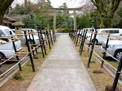 京都御苑の傍にある「梨木神社」です。初秋には萩の花で覆われる参道ですが、今はこのような寂しげな風景になっています。萩もこのようにきれいに刈り込まれていました。