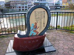 三条大橋には、いろいろな銅像等があります。有名な高山彦九郎の銅像があります。そう言えば昔この銅像前は待ち合わせ場所でした。当時は今のところではなく橋の近くにありました。駅伝の発祥の記念碑もあります。大正6年4月27日~29日にかけて「東海道駅伝徒歩競走」が行われ、スタートは三条大橋、ゴールが東京不忍池で27日午後2時にスタート23区間508㎞を走り29日午前11時34分にゴールしたそうです。