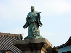 左京区東山二条の交差点に日蓮像が、このようにひときは高く立っています。妙伝寺(みょうでんじ)は、日蓮宗本山の山梨県見延山に関西の信者が参詣するのは不便ですので、文明9年(1477年)に創建されましたが戦乱や火災で転々として宝永の大火後現在地に定まったようです。本堂には「関西見延」という大きな額がかかっています。